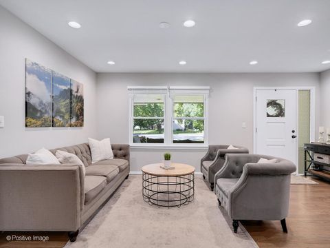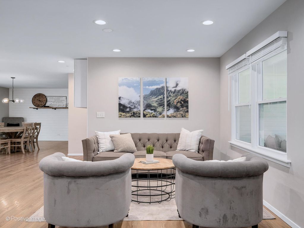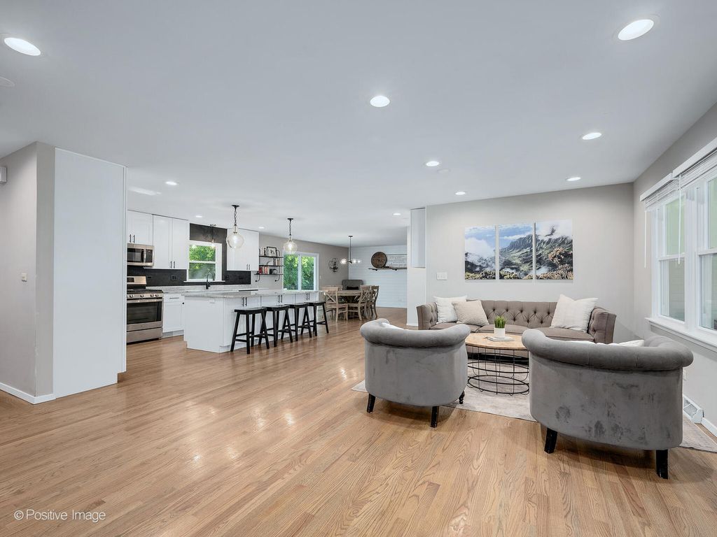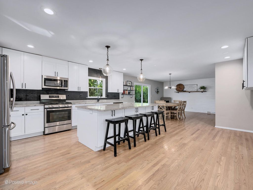 SIMPLY STUNNING! Fully renovated in 2020, this magazine-worthy 3 bed, 2 bath ranch in highly sought-after High Knob is the one you've been waiting for! Located in award-winning District 200 schools, this home offers stylish, open-concept living all on one level. From the charming wide front porch to the light-filled interior, you'll fall in love with the details. Gorgeous light hardwood floors run throughout the main level. The show-stopping kitchen features an 8-foot granite island with seating, sleek pendant lighting, all stainless-steel appliances, and a new tile backsplash-perfect for both everyday living and entertaining. The dining area with shiplap accents opens to the backyard patio through sliding glass doors-ideal for outdoor grilling and gatherings. Off the garage, a convenient drop zone with cabinets and hooks keeps life organized. The family room boasts custom built-ins and a beverage fridge for effortless hosting. Retreat to the generous primary suite with an updated en-suite bath. Two additional bedrooms (one with a walk-in closet) and a stylish full hall bath complete the main floor. The finished basement offers a versatile rec room perfect for movie nights, a playroom, or home gym. All this in a fantastic location-minutes to Wheaton shopping and dining, with easy access to I-355 & I-88. Don't miss this opportunity!