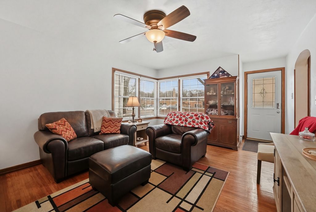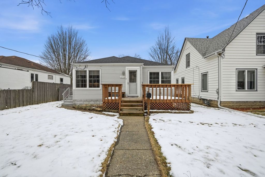 This charming home offers 2 bedrooms, 1 bathroom, and a spacious living room featuring hardwood floors. The bathroom has been tastefully updated and freshly painted. The kitchen boasts custom cabinets, Corian countertops, and newer appliances, all of which will convey with the home, including the washer and dryer. For additional living space, the partially finished basement provides two extra rooms, ideal for accommodating guests, creating a family room, hobby rooms, or storage. A basement bathroom is in progress, and any materials for its completion will remain with the home. The property features newer vinyl windows with custom blinds and a new roof installed in 2023. The mechanical systems are in excellent working order, with the HVAC system on a seasonal maintenance program and a water heater that is only four years old. The electrical system has been fully updated. The front deck offers a pleasant space for relaxation, while the brick patio in the back provides a more private setting. Patio furniture will convey with the home. On hot days, enjoy the above-ground pool in the fenced-in backyard or sunbathe on the pool deck. The oversized two-car garage includes ample parking space, a workshop area, and storage cabinets. The interior has been freshly painted and is ready for new owners to move in. Schedule a viewing today!