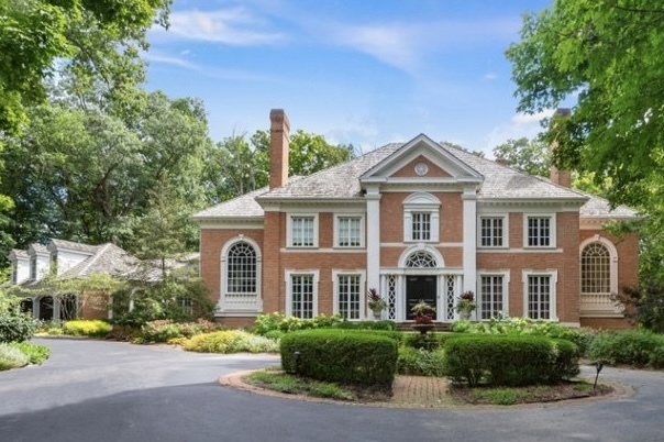 This exquisite Georgian estate, crafted by Harrison Construction in collaboration with architects Spitzmiller and Norris, is nestled on a remarkable 4.47-acre lot in the prestigious Woods of Fox Glen. Handpicked by Harrison, the visionary behind the community, this residence offers unparalleled privacy, enhanced by a picturesque 1/4-mile driveway that welcomes you into a serene landscape surrounded by mature trees. As you approach the home, the classic Georgian architecture captivates with its elegant brick facade, intricate cornices, stately columns, and finely detailed plinth bases. Step inside to a grand two-story foyer adorned with marble flooring, setting the tone for the stunning interior that showcases the hallmark features of high Georgian design, emphasizing symmetry and proportion. The home boasts nearly 10,000 square feet of luxurious living space, with ornate wood mouldings and trim throughout, soaring 10-foot ceilings on the main level, and two elegantly crafted staircases. The private library is a standout, featuring a coffered ceiling, rich cherry wood accents, and a mantel imported from England, complemented by custom built-in bookshelves. The formal dining room is designed for hosting, with floor-to-ceiling windows and a cozy fireplace, seamlessly connecting to the gourmet kitchen through tasteful dividing doors for effortless entertaining. The grand two-story living room exudes sophistication, showcasing herringbone wood floors, dramatic chandeliers, and a stunning array of windows that bathe the space in natural light. Three sets of French doors lead to a charming brick paver patio, perfect for outdoor gatherings. Culinary enthusiasts will delight in the gourmet kitchen, complete with expansive granite countertops, a custom pantry, 42-inch cherry cabinets, and a peninsula with a prep sink. A cozy family room adjacent to the kitchen features a custom skylight inspired by Victor Hugo's Parisian home, along with bay windows and a fireplace framed by built-in shelves. The tranquil main-level master suite offers a serene retreat, complete with a sitting area, abundant natural light, his and hers walk-in closets, and a luxurious ensuite bath featuring dual vanities, a whirlpool tub, and a separate shower. Upstairs, four generously sized bedrooms each boast private ensuite baths, while the walk-out basement offers additional living space, including a family room with a double-sided fireplace, a full kitchen, a game room, two bedrooms, and ample storage. Outdoors, nature lovers will find a paradise with expansive patios, lush greenspaces adjacent to scenic walking paths, and enchanting English gardens, perfect for peaceful strolls and relaxation. This estate combines luxury living with the beauty of nature, creating an unparalleled sanctuary. *Please do not enter the property without a confirmed appointment*
