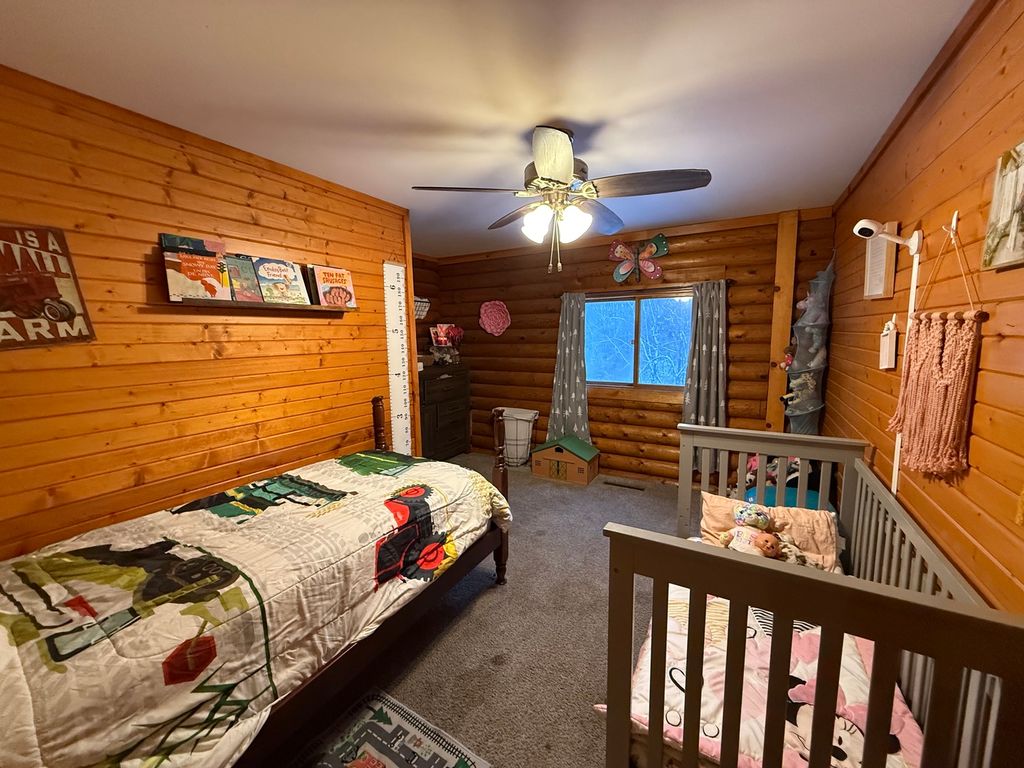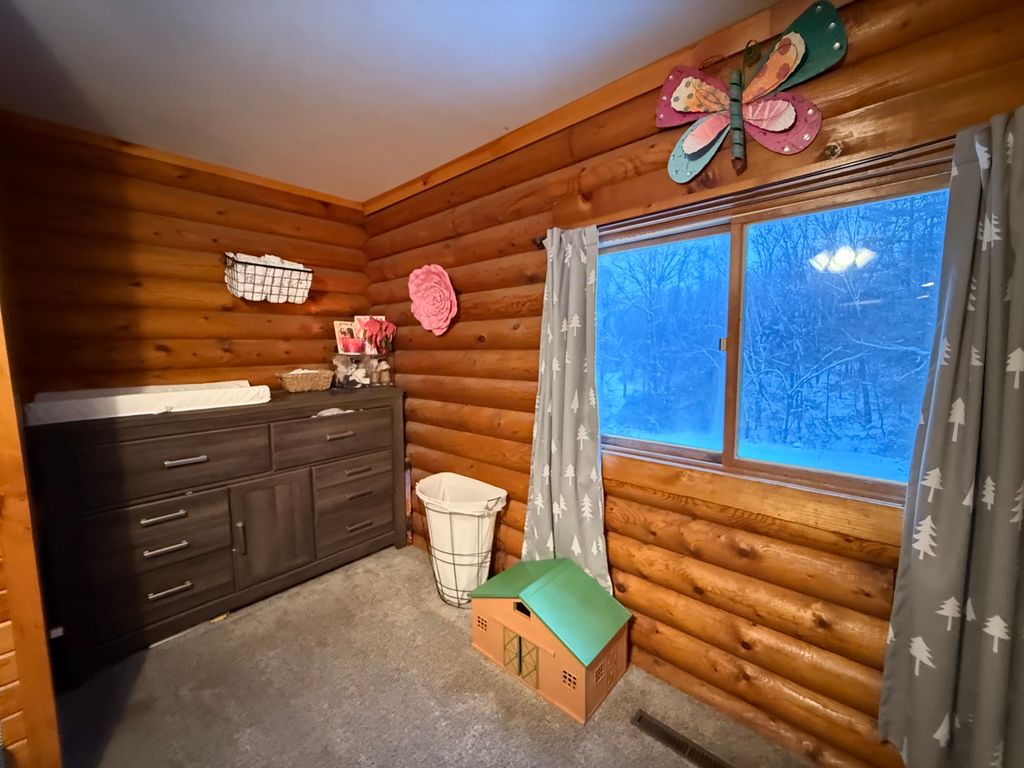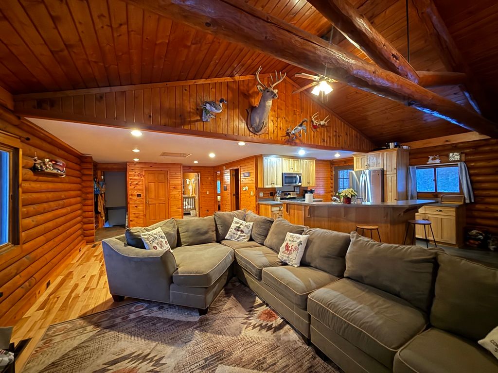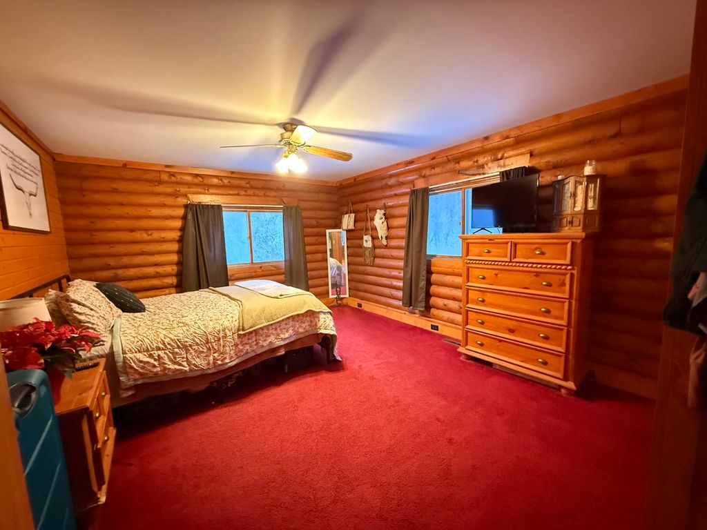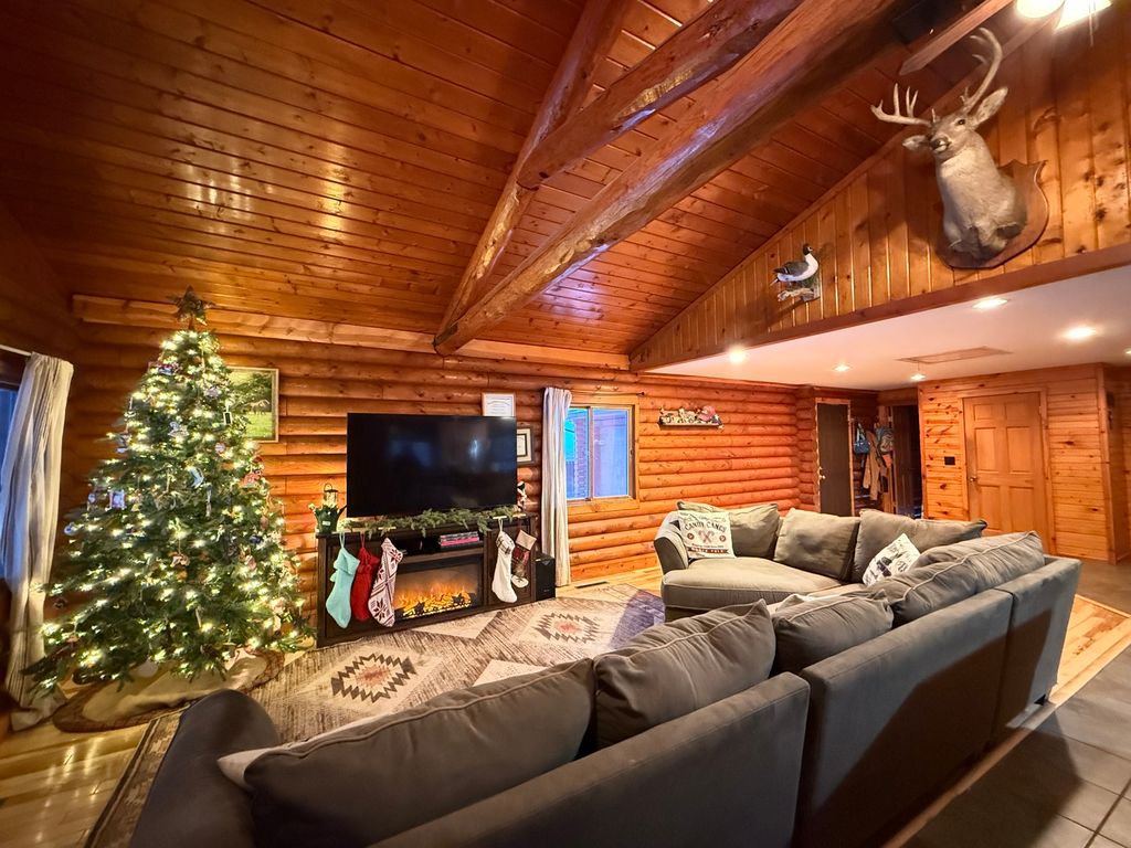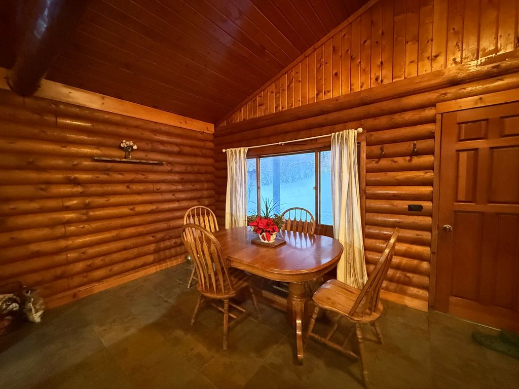 This charming rural log cabin sits on 1.5 acres of peaceful land, featuring three cozy bedrooms, with a potential fourth in the walk-out basement and two bathrooms. The open-concept layout creates a warm and inviting atmosphere perfect for entertaining. The home has a two-car attached garage and a spacious, heated 30x52 foot shop with an additional 12x30 cold bay perfect for projects or storage. Outside, you'll find cherry trees, wild blackberries, raspberries, blueberries, and even asparagus growing on the property. Supplemental wood furnace keeps energy costs down by heating the shop, home and hot water heater when in use. All appliances are included in the sale.